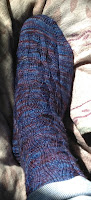 Finished socks for Bran, Wendy Johnson's Diamond Gansey Socks, a favorite pattern of mine. It's hard to see the pattern in the varigated wool.